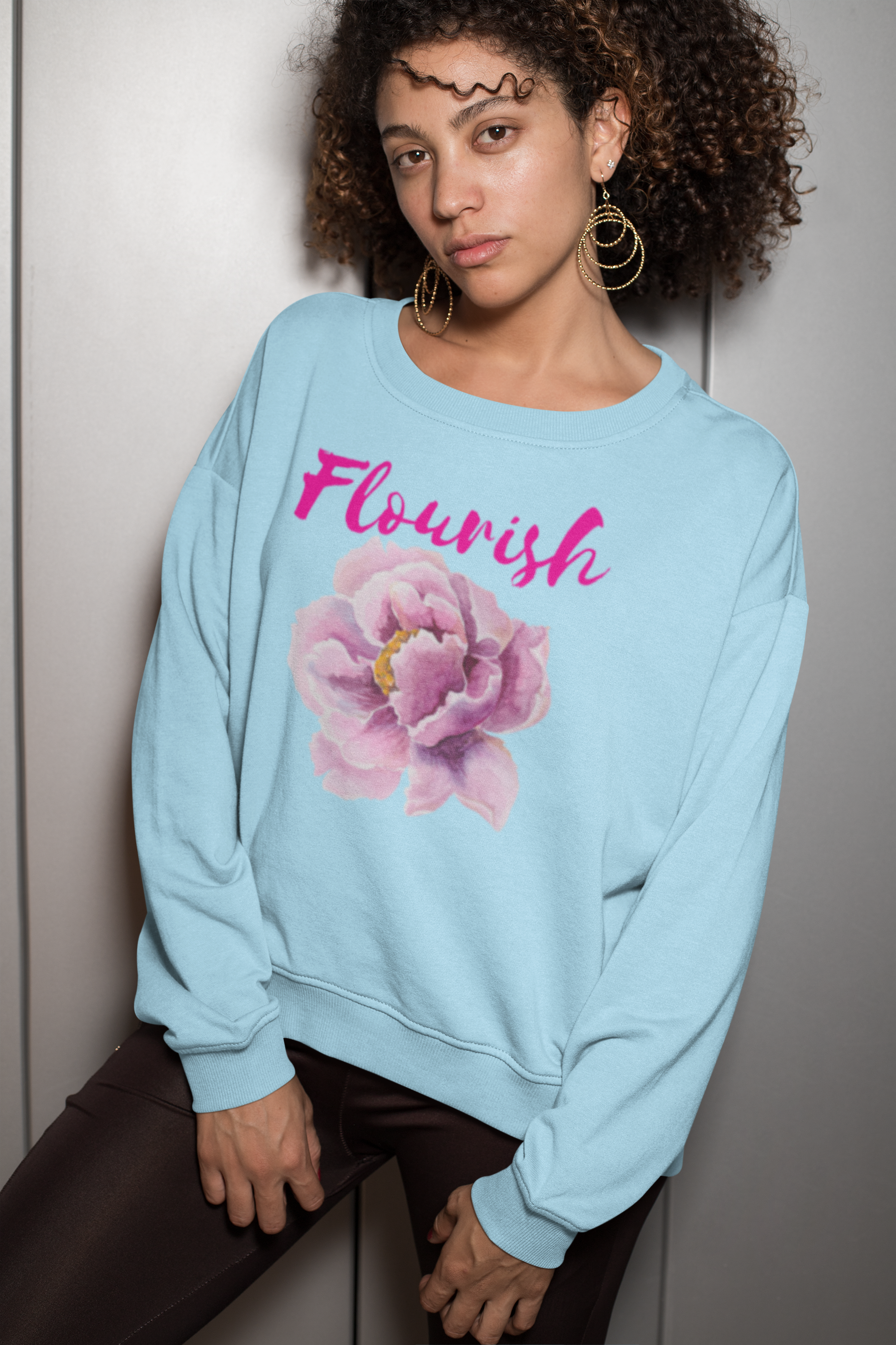 Flourish girly sweatshirt that exudes a cozy and feminine vibe, perfect for the colder months. Ideal for adults who appreciate comfortable and stylish clothing. Relevant for holidays, gatherings, and casual occasions.